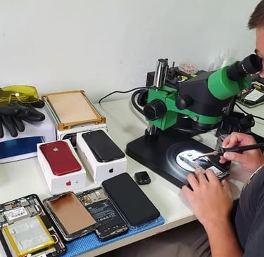 Realizamos trocas de telas, micro soldagem e reparos em placas, sempre utilizando peças originais ou novas de fábrica, para garantir a satisfação e confiança dos nossos clientes.